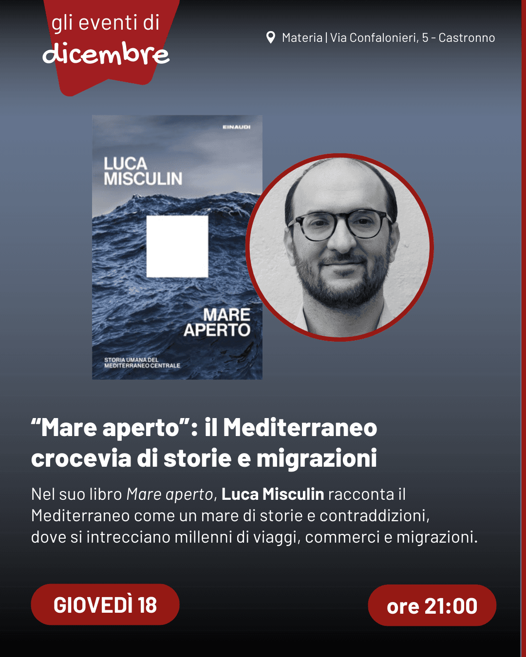 Nel suo libro Mare aperto, Luca Misculin racconta il Mediterraneo come un mare di storie e contraddizioni, dove si intrecciano millenni di viaggi, commerci e migrazioni. Attraverso il Canale di Sicilia – crocevia fra Europa e Africa – il giornalista del Post esplora un mare che è insieme ponte e confine. Tra pirati e cavi sottomarini, ossidiana e Internet, il Mediterraneo rivela la sua profonda continuità umana e ci aiuta a capire chi siamo e dove stiamo andando.