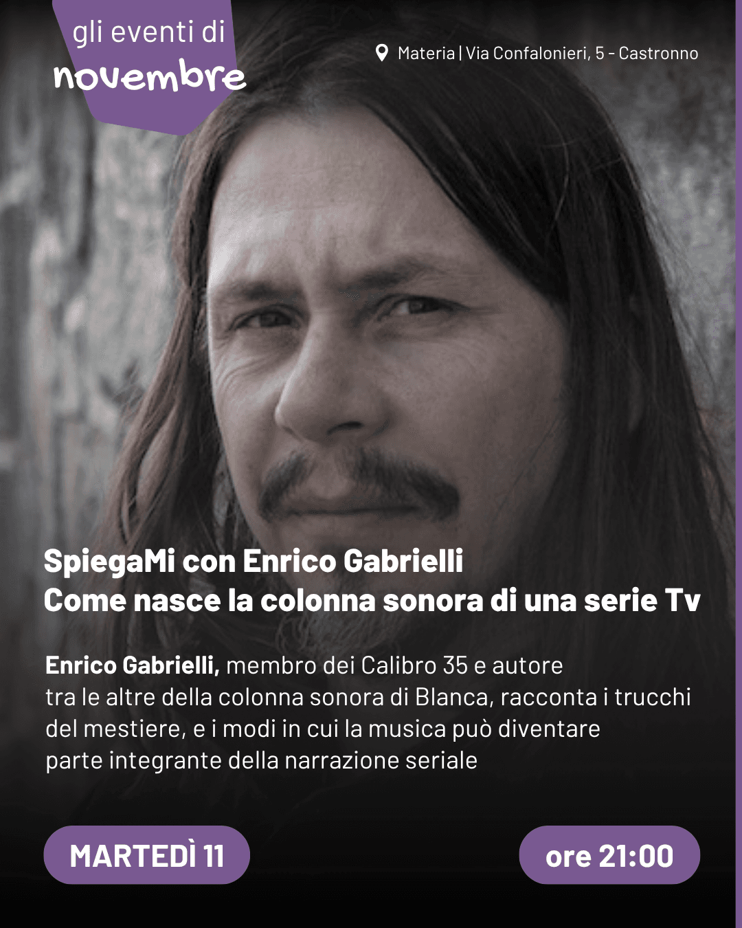 Il compositore e polistrumentista Enrico Gabrielli, membro dei Calibro 35 e autore tra le altre della colonna sonora di Blanca, racconta i trucchi del mestiere, gli ostacoli tecnici e creativi, e i modi in cui la musica può diventare parte integrante della narrazione seriale. A lui lasceremo il palcoscenico per una lezione tra curiosità e aneddoti del lavoro di un musicista alle prese con una storia da raccontare in musica.