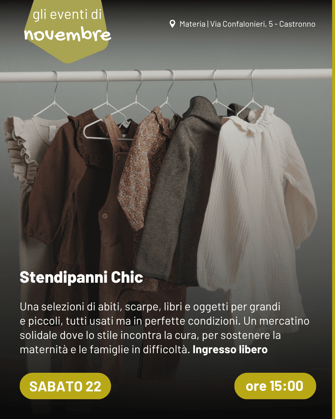 Una selezioni di abiti, scarpe, libri e oggetti per grandi e piccoli, tutti usati ma in perfette condizioni. Un mercatino solidale dove lo stile incontra la cura, per sostenere la maternità e le famiglie in difficoltà.